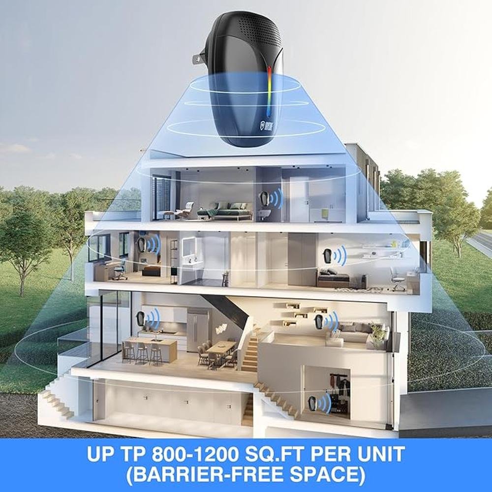 • Functional upgrades in 2024. Intelligent frequency conversion with three different sound wave frequencies, covering a frequency range of 20KHZ-60KHZ, can more effectively deal with various types of pests and keep your family away from pest infestation