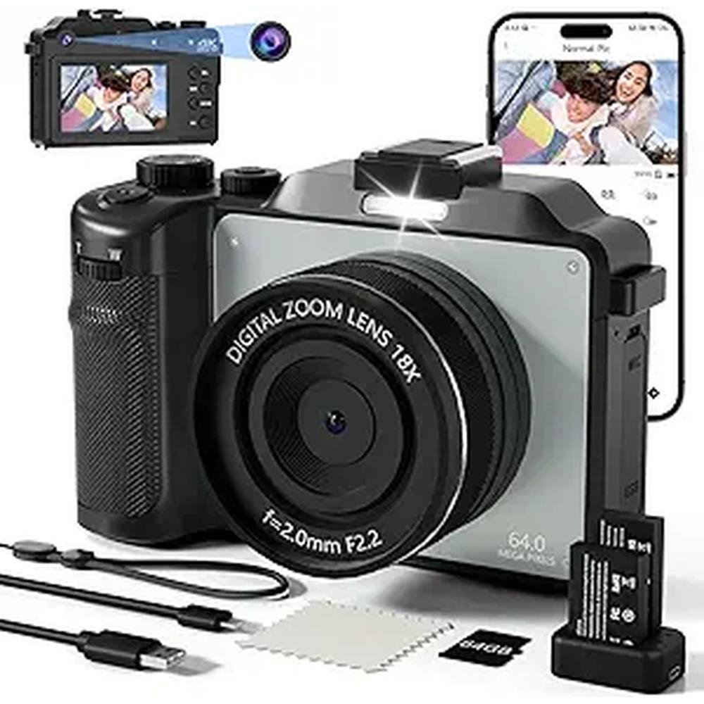 Camera Digital | 4K Digital Camera for Photography 64MP WiFi Autofocus Vlogging Camera for YouTube 4K Video | Compact Travel Point Shoot Cameras with Flash Selfie Lens