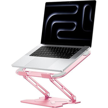 - Fashion ColorThis rose pink computer stand for laptop has a beautiful and fashionable appearance, which is specially designed for people who like lovely colors, use apple-grade oxidation process, make the color never fade. And this is a foldable laptop riser, which can help stand your laptop and make your desk tidy.