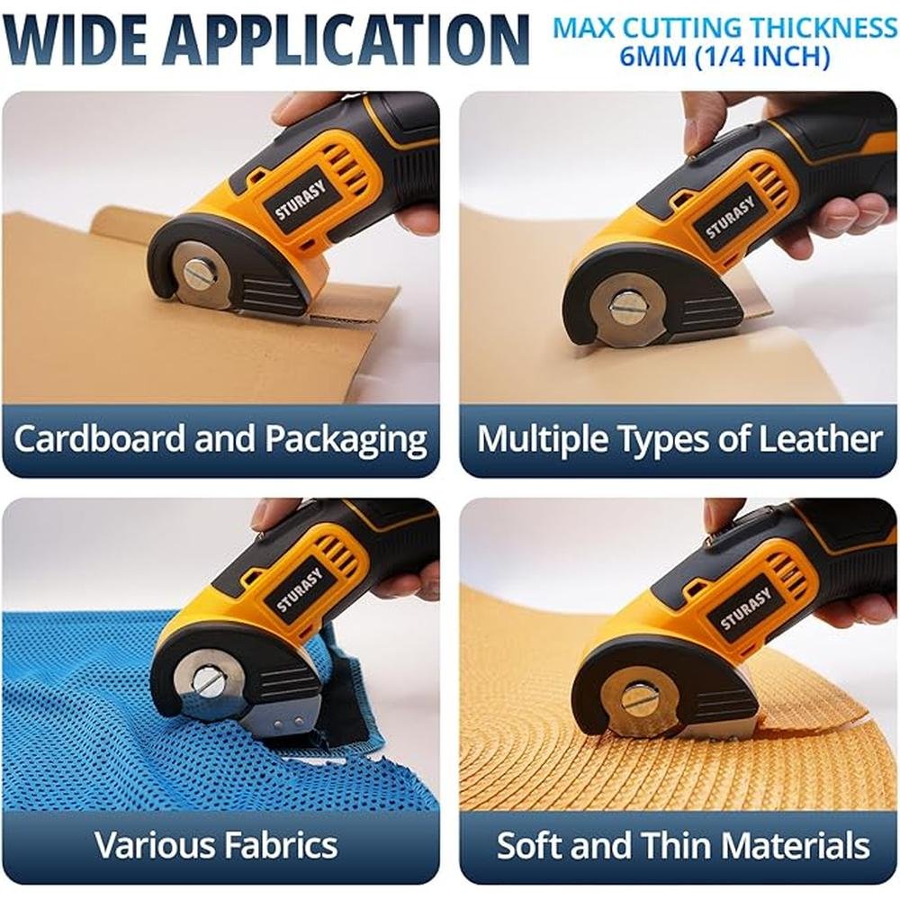 • Featuring long-lasting batteries and fast charging technology, our electric cutter ensures that you stay productive and powered up throughout the day, without any interruptions or downtime, making it ideal for cutting cardboard, fabric, carpet, leather, and paper.