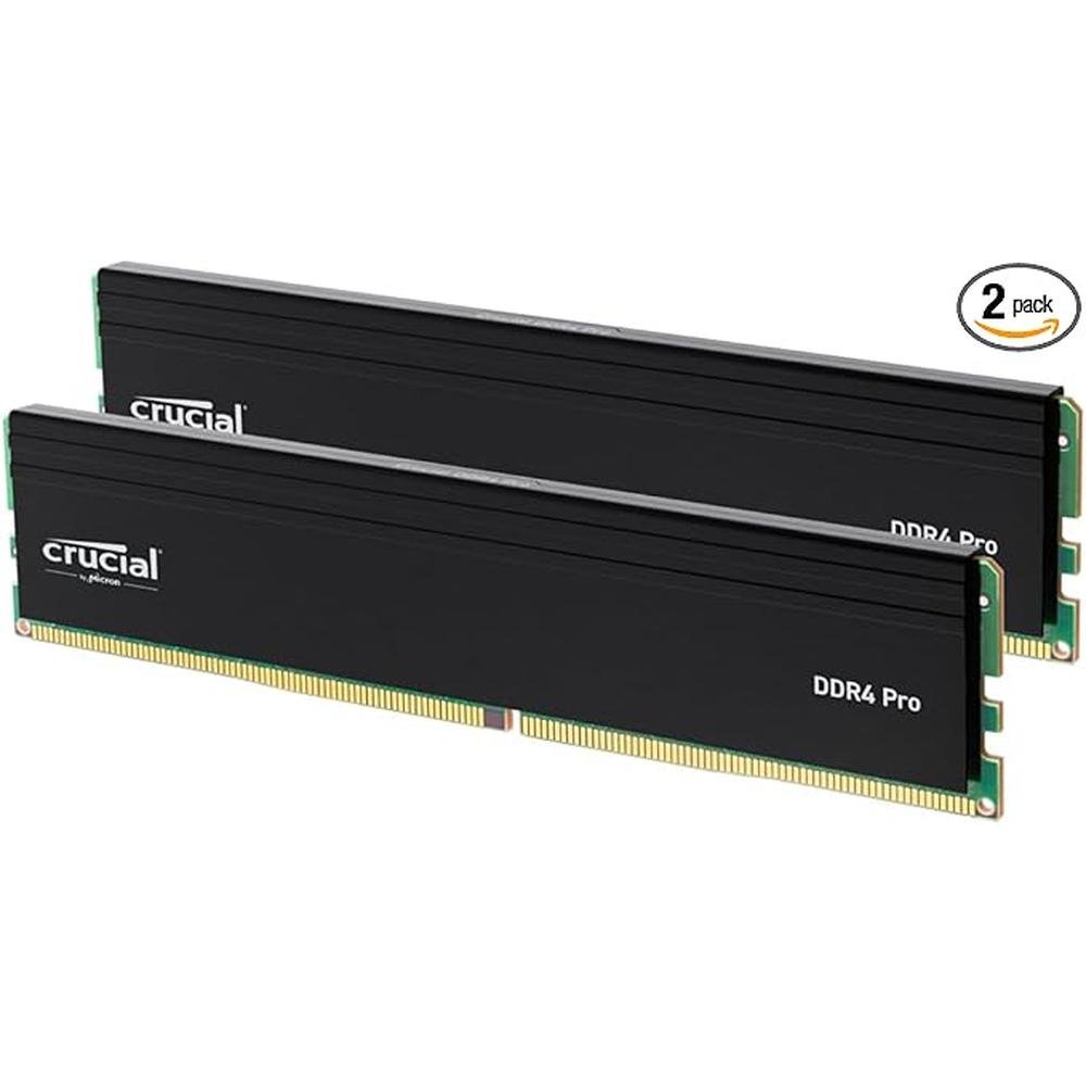 Crucial Pro 64GB DDR4 RAM Kit (2x32GB), 3200MHz (or 3000MHz or 2666MHz) Desktop Memory, Compatible with Intel and AMD Ryzen - CP2K32G4DFRA32A