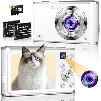 Digital Camera | TEBNGIHNM 4K 48MP Dual Cameras for Photography | 16x Digital Zoom Point and Shoot Cameras with 32GB Card