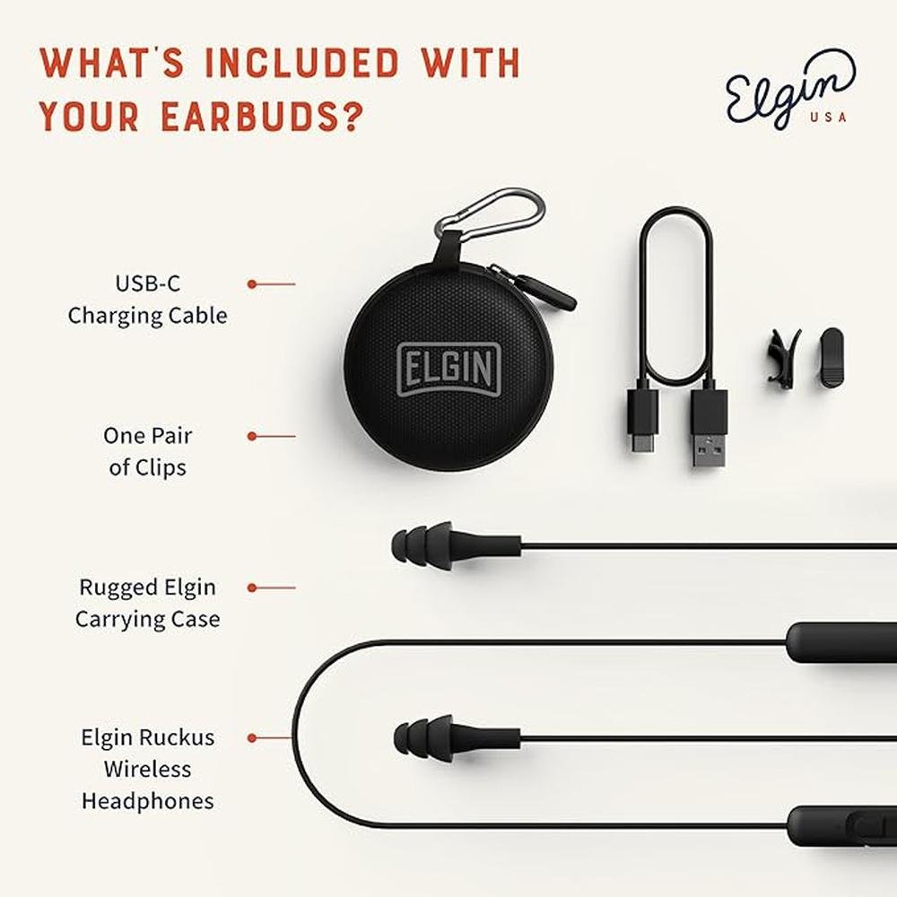 Elgin Ruckus Wireless Bluetooth Earplug Headphones, 25 dB Noise Reduction Ear Plug Earbuds, Noise Cancelling Mic, 12 Hour Battery, IP65 sweatproof, OSHA Compliant Hearing Protection, Work Safety
