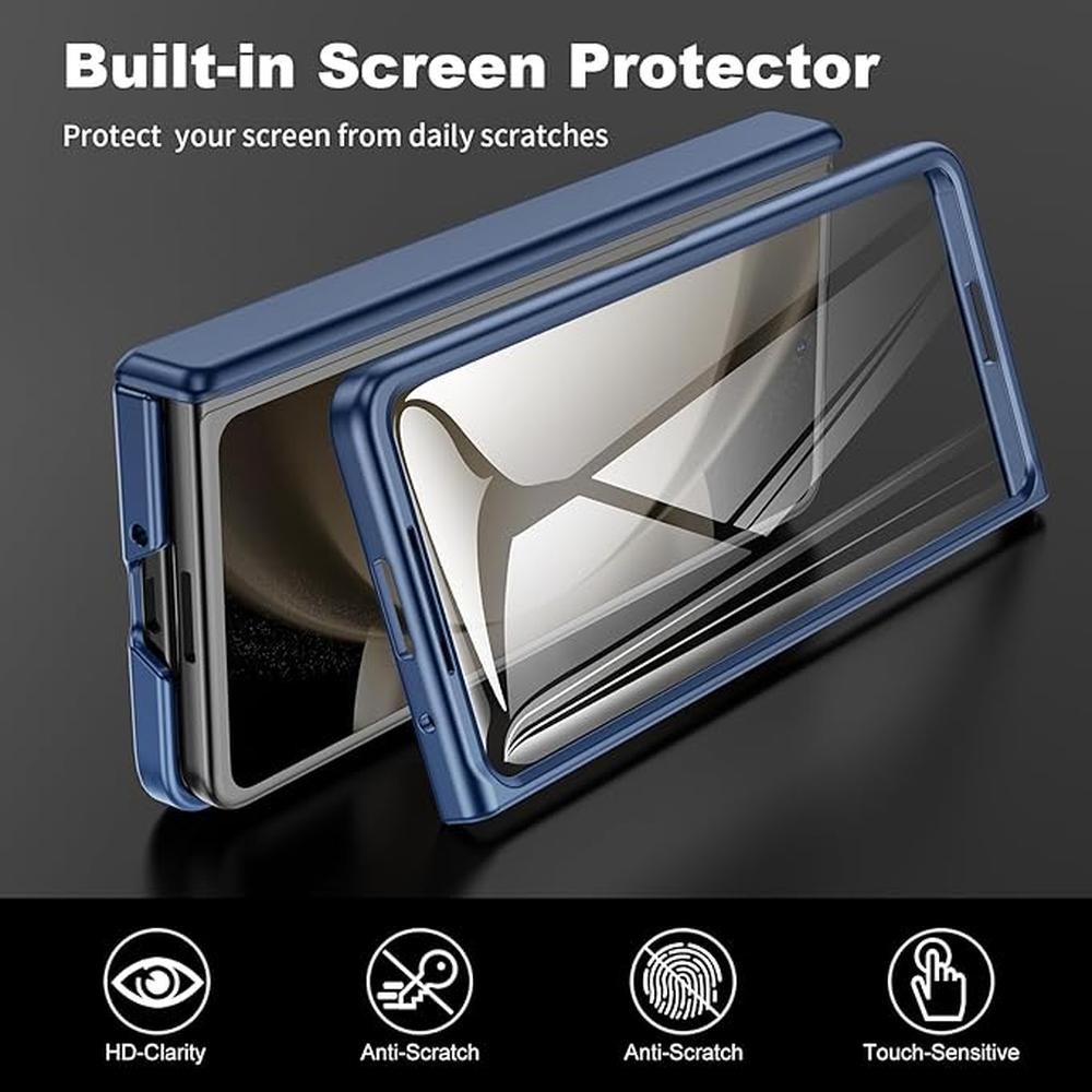 for Samsung Galaxy Z-Fold-5 Case: Slim Phone Case for Z Fold 5 with Full Hinge Protection & Kickstand & Screen Protector (Blue)