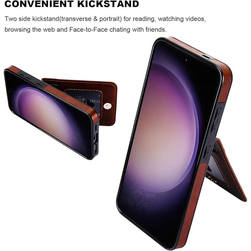 KIHUWEY for Samsung Galaxy S24 Case Wallet with Credit Card Holder, Flip Premium Leather Magnetic Clasp Kickstand Heavy Duty Protective Cover for Samsung Galaxy S24 6.2" (Brown)