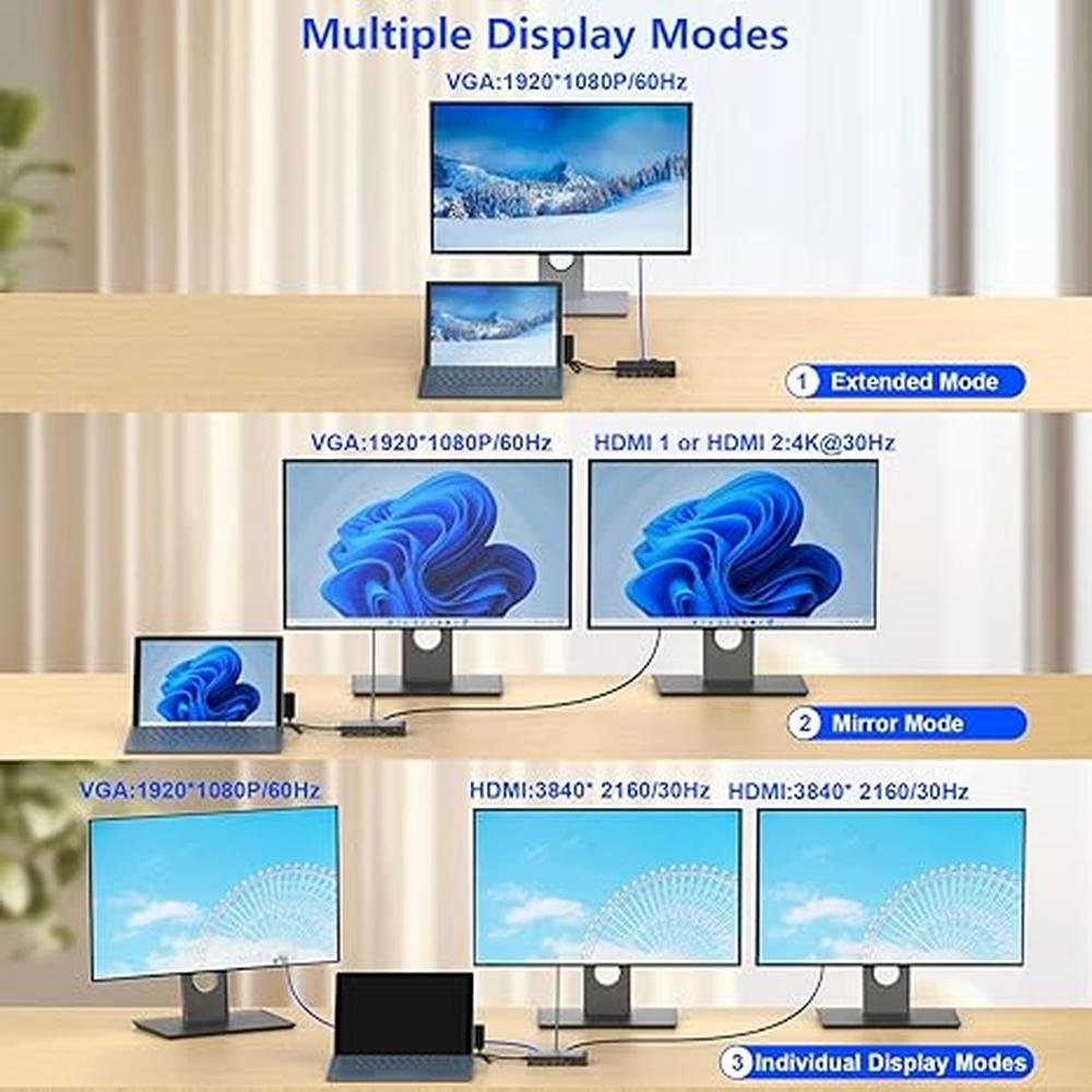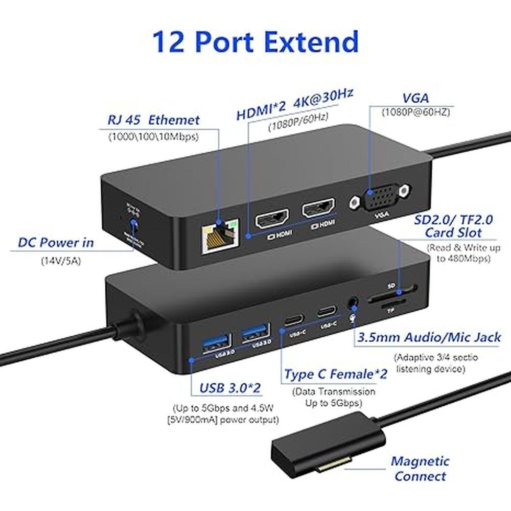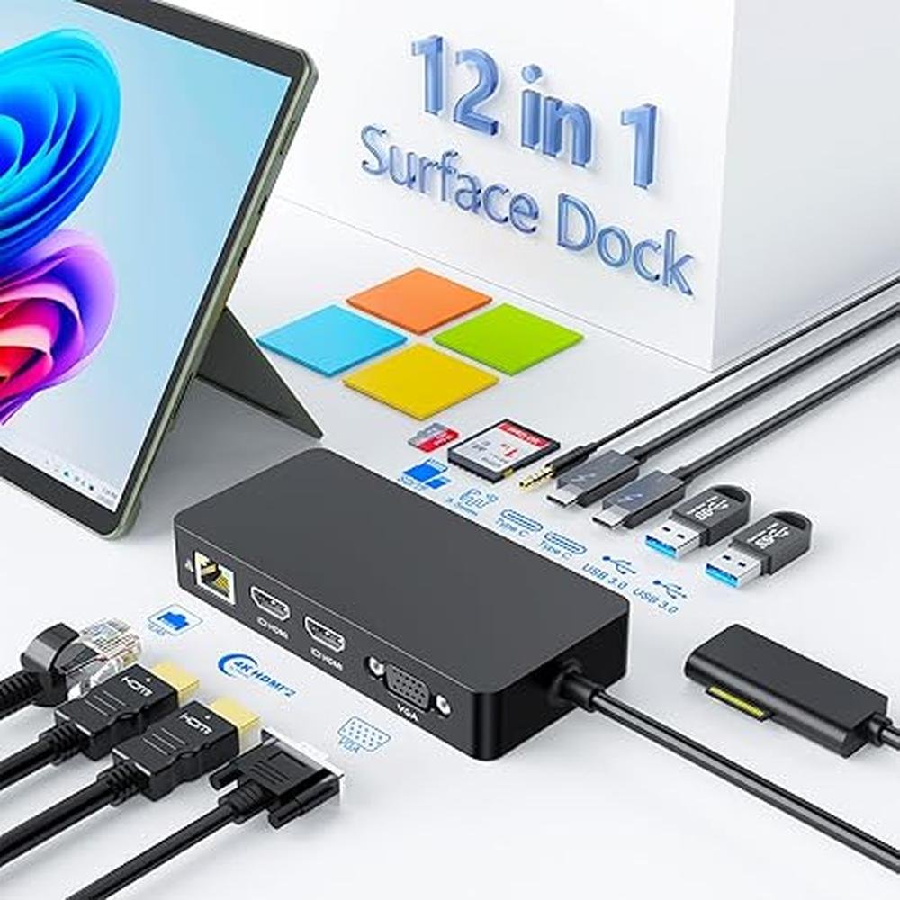 Surface Microsoft Dock | Triple Display 2 HDMI 4K VGA 12-in-1 Docking Station for Surface Pro Laptop | Premium Grade