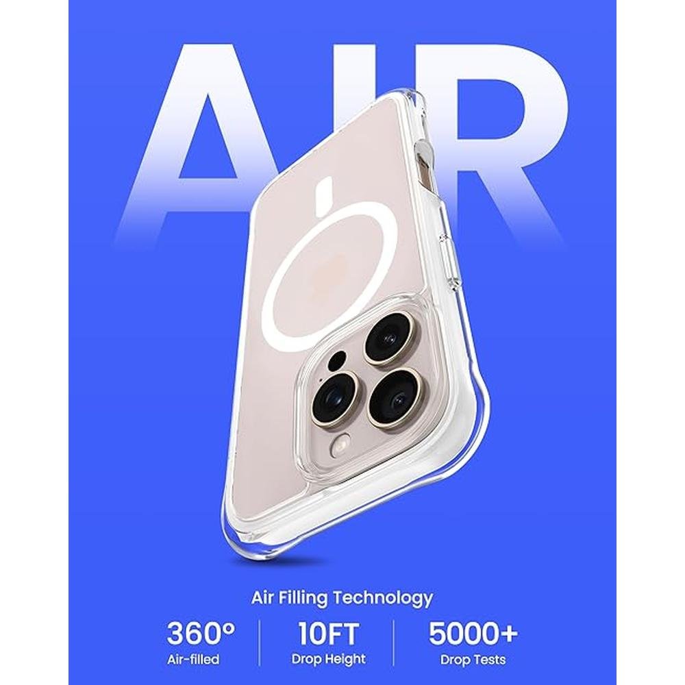 ORNARTO Air Case for iPhone 16 Pro Clear, Compatible with MagSafe, Military-Grade Drop Protection Cover with Built-in Air, White