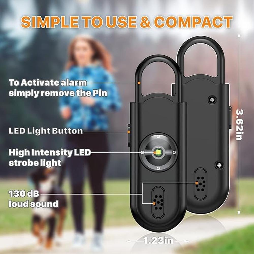 • 130 dB SAFETY EMERGENCY ALARM This compact personal security alarm emits 130 dB to disorient attackers and alert others. Its loud noise provides a chance to escape and signals nearby people for help, keeping you and your loved ones protected