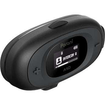 The Parani A10 Wired and A10 Boom are sleek, low-profile Bluetooth headsets for motorcycle helmets. Connect either A10 to your smartphone via Bluetooth to make use of features on the road, such as listening to your music or even taking phone calls. Bluetooth Intercom connects you with up to three other Parani users, with an effective range of up to 1 km (0.6 mi). Backed by Sena, each A10 ensures a superb audio experience. The headset comes with a built-in LCD screen, giving the user quick visual updates on functions such as battery capacity, frequency, and volume level.