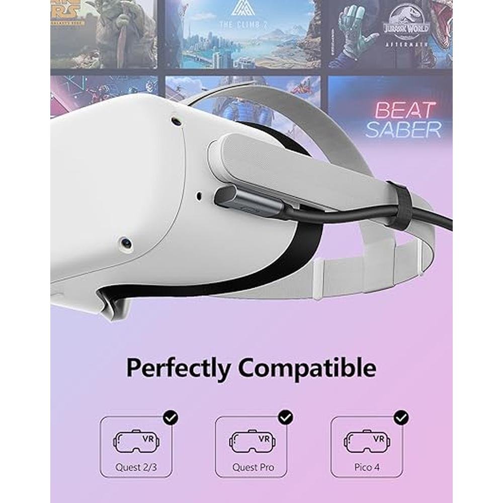 - Charging While PlayingSUNGUY Upgraded 2 in-1 link cable has a usb type c charging port, allows you charging while playing Pico 4, greatly enhance your VR experience. No more pausing game because of out of power. Note Not compatible with Quest 3 and Quest 2.