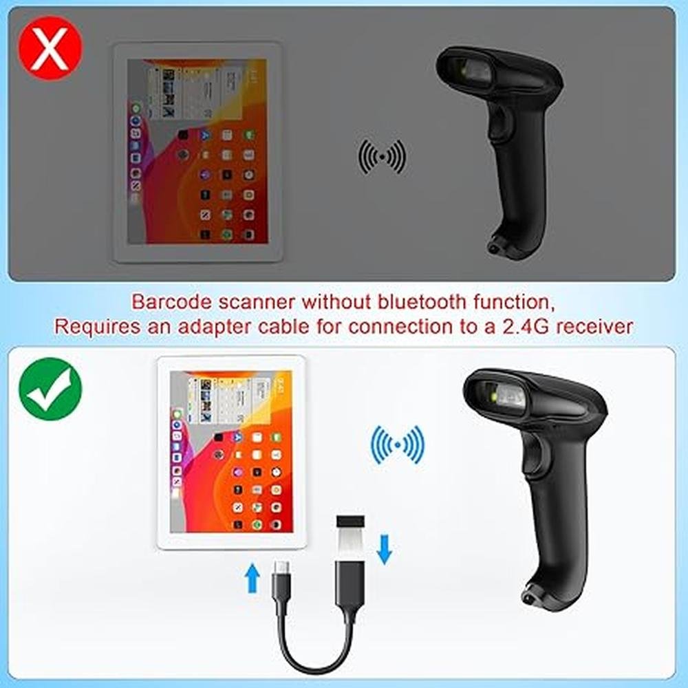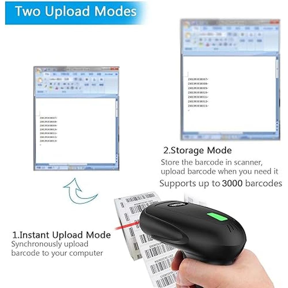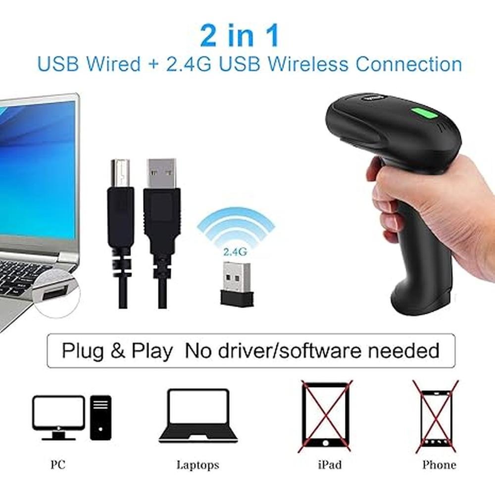 Symcode Wireless Barcode Scanner | 2-in-1 2.4GHz Wireless USB 2.0 Wired Rechargeable Cordless 1D Barcode Reader | Advanced Scanning Solution