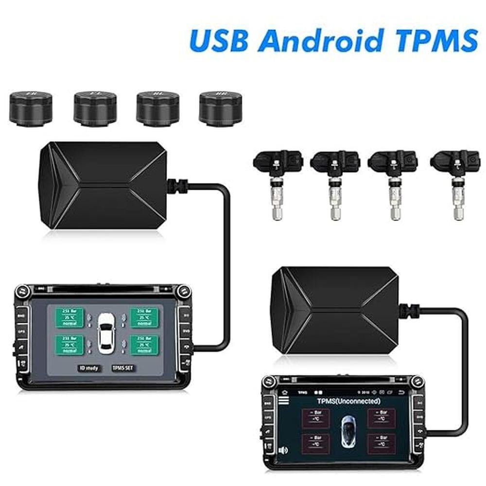 Tire Pressure Monitor System USB TPMS External Sensors Compatible with Android Car Navigation Display (External)