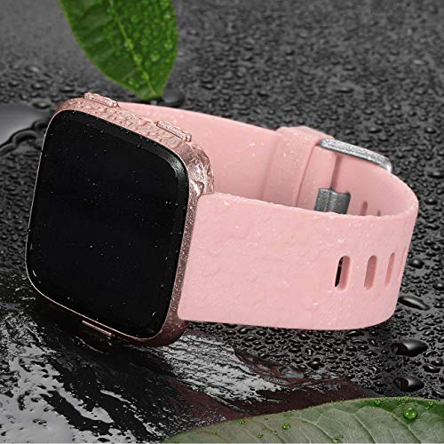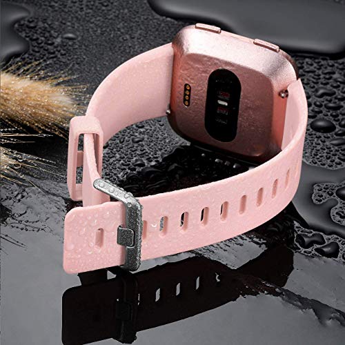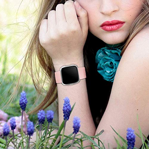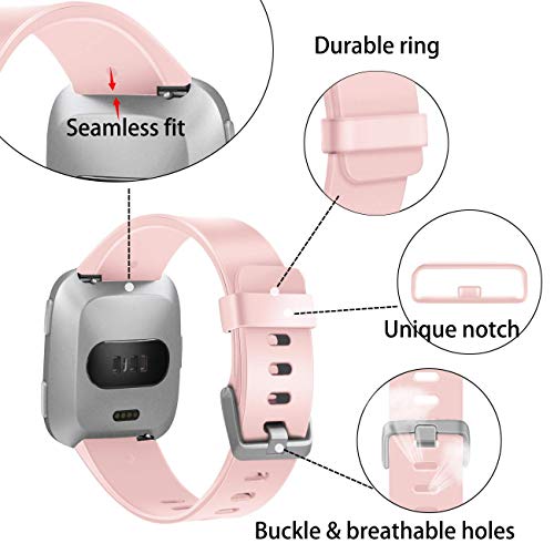 Wepro Band Compatible with Fitbit Versa 2 Bands for Women Men, Soft Band Compatible with Fitbit Versa Bands, Sport Waterproof Breathable Replacement Wristbands Strap for Versa Lite, Small, Pink Sand
