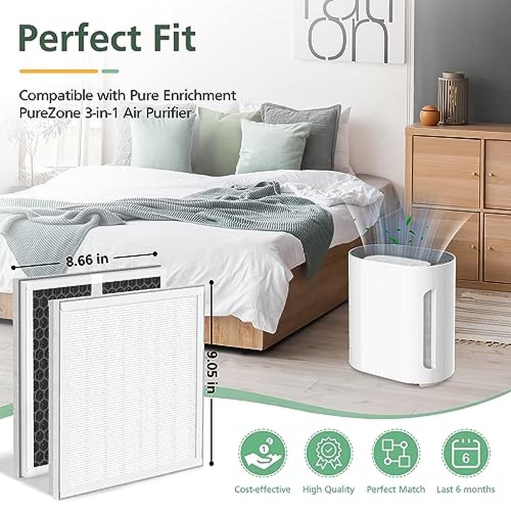 HEPA Replacement | 2 Pack 3-in-1 Filter Compatible with Pure Enrichment PureZone Air Purifier | 99.97% Efficiency