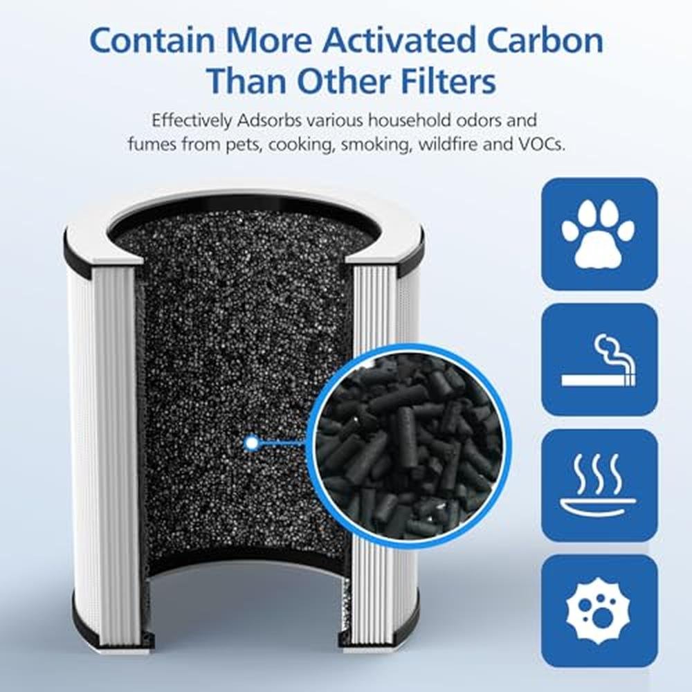 • High-efficiency activated carbon filter absorbs household odors from pets, cooking, smoke, and VOCs, creating a fresher indoor environment