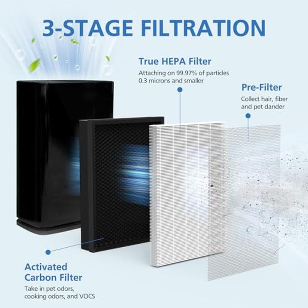 - 3-in-1 HEPA filter with activated carbon technology removes unwanted odors and pollutants from your indoor space