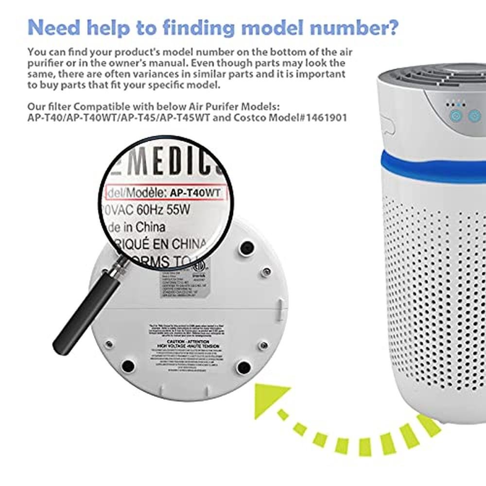 - Compatible with Homedics air purifier models AP-T45, AP-T45WT, AP-T40, AP-T40WT, AP-T40WTAR, and 1461901 (Costco Model)