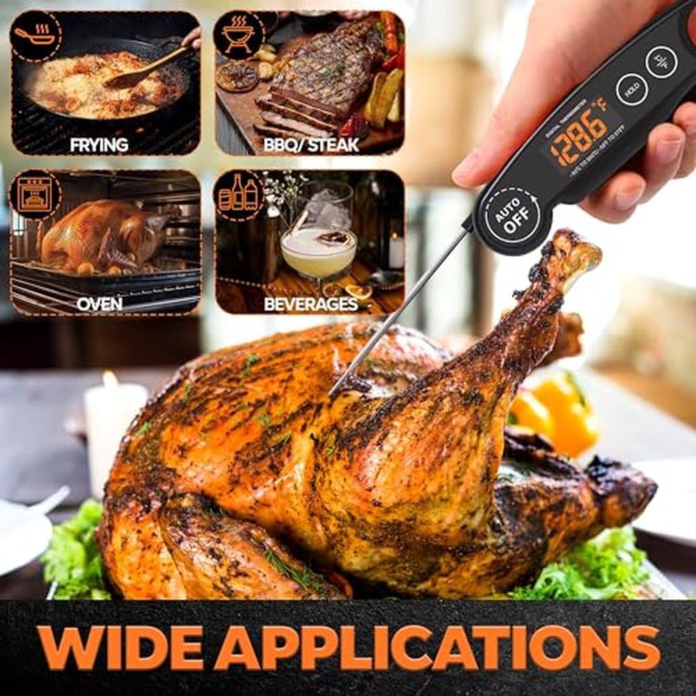 Indulge in the world of precision cooking with our 1 Second Instant Read Food Thermometer, expertly designed to deliver accurate temperature readings in just one second. As a premium rechargeable meat thermometer, it's perfect for cooking, grilling, and BBQs, ensuring your dishes are always cooked to perfection. This sophisticated digital kitchen thermometer boasts a waterproof design, making it durable and easy to clean. With its rapid reading capability, you can quickly check the internal temperature of your food, whether you're cooking meat, poultry, or fish. Unlike traditional thermometers that take 2, 5, 10, 30, or 60 seconds to provide a reading, our instant second thermometer gives you the speed and accuracy you need to cook like a pro. Elevate your cooking experience with our top-tier thermometer, featuring a bright LED display and 0.5C accuracy, ideal for grilling, baking, cooking, candy making, BBQ, and camping.