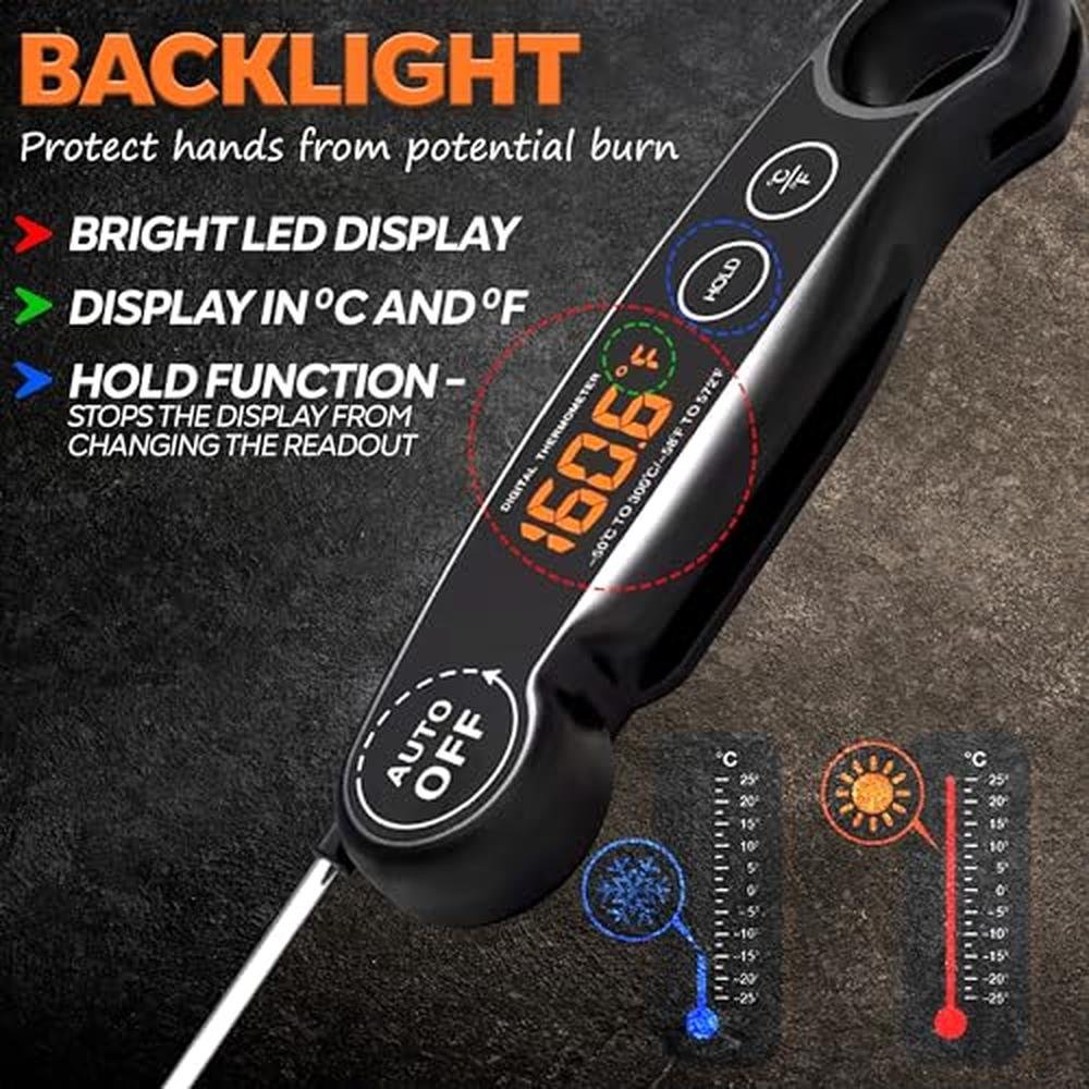 | SKU | BMWATER & DUSTPROOF THERMOMETER - Instant food thermometer, thermometer with probe is built to withstand the rigors of everyday use. With an IP65 rating, it is protected against water and dust ensuring durability when the type-C hole is closed properly. Can be washed and cleaned in running water. It is waterproof digital food thermometer. |