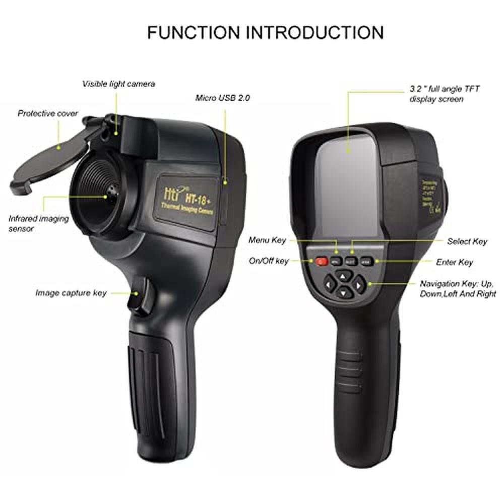 256X192 Higher IR Resolution HT-18+ Handheld Thermal Camera from HTI -18 Newest Update, IR Resolution Improved to 256x192 with 25 HZ, 300,000 Pixels, Easy to Read 3.2" Color Display, Includes Battery