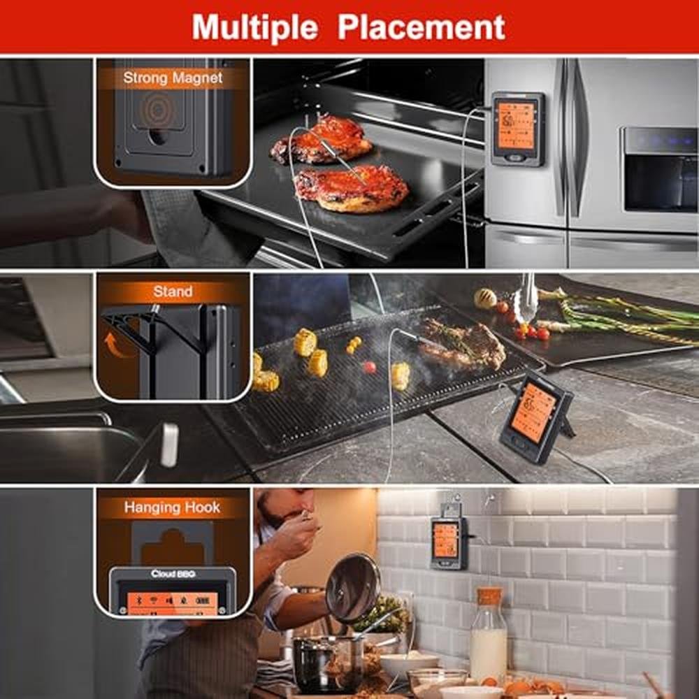 Indulge in the world of precise temperature control with the 500FT Digital Meat Thermometer, expertly designed for smoker grilling, oven, and industrial applications. This premium Bluetooth kitchen thermometer boasts an impressive long-range connectivity of up to 500ft, enabling you to monitor your cooking remotely with ease. Reviews from satisfied users rave about its exceptional reliability, durability, and accuracy, solidifying its position as the best 500ft thermometer for outdoor and industrial use. With its advanced multy probes, you can track temperatures with utmost precision, ensuring perfectly cooked meals every time. Whether you're a professional chef or a backyard griller, this sophisticated wireless thermometer is a game-changer. Compare it to other thermometers on the market and discover why it stands out for its unparalleled accuracy, durability, and ease of use.