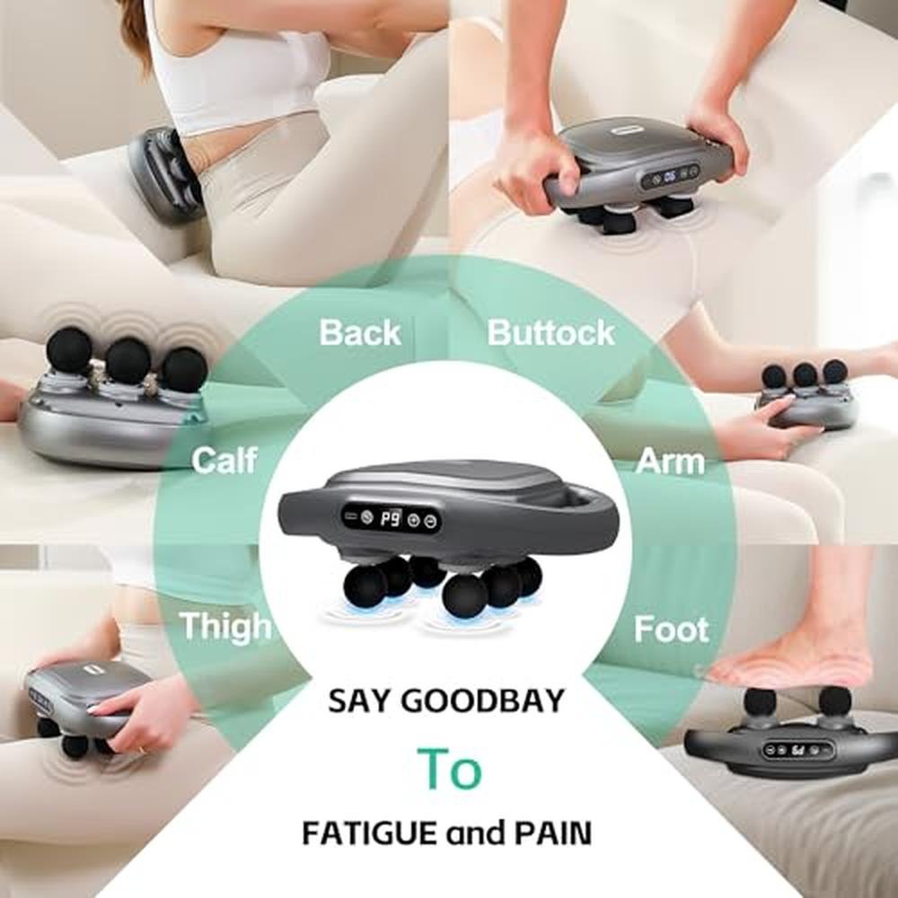 Experience the ultimate in relaxation and pain relief with our 6 Head Massage Gun, designed to target deep tissue areas for a comprehensive back massage. Perfect for athletes and individuals seeking to alleviate back pain, this percussion massager features 9 levels and 9 modes to customize your massage experience. Whether you're looking to soothe sore muscles in your legs, arms, waist, or back, our massage gun is the ideal solution. With its versatility and effectiveness, it's also a great gift idea for Father's Day, Mom, or any woman looking to indulge in some much-needed self-care. Compared to other back massage options on the market, our 6 Head Massage Gun stands out for its innovative six-head configuration, which targets specific muscle groups with deep tissue percussion, promoting enhanced blood circulation and relieving soreness and stiffness.