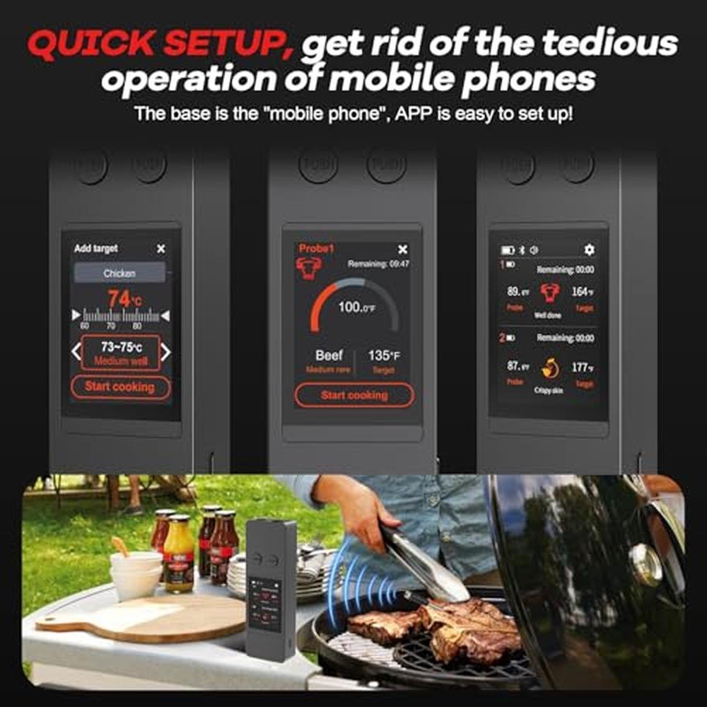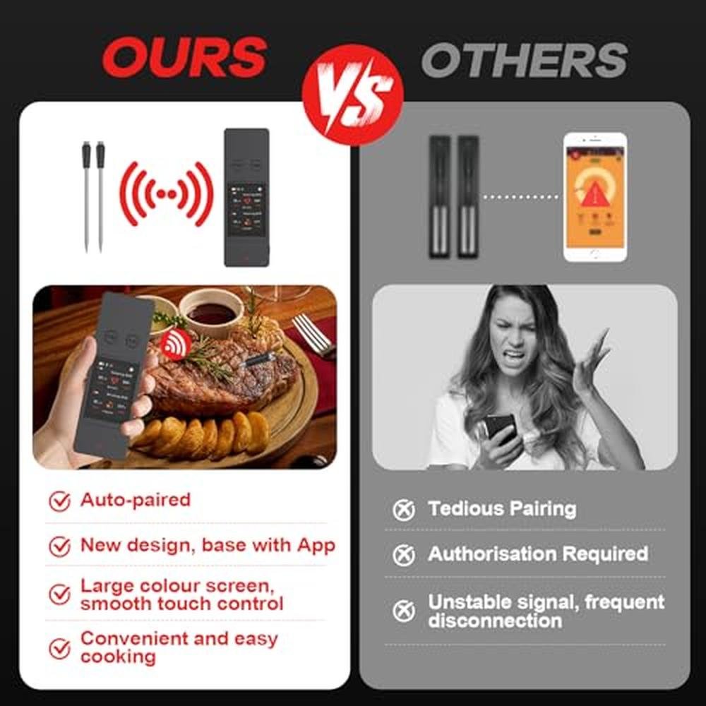 • Our thermometer boasts advanced features, including a large touchscreen and 2 upgraded ultra-thin probes, making it the perfect tool for precision cooking
