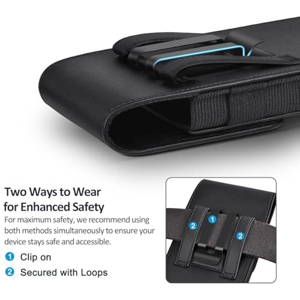 Experience the best-in-class phone protection with the ACCKUO Leather Phone Holster, expertly crafted from genuine leather to provide a sophisticated and refined phone carrying experience. Enhance your phone protection experience with the ACCKUO Leather Phone Holster, designed to fit seamlessly with your Samsung Galaxy S25/S24/S23/S22/S21/S20 Ultra and provide a secure and convenient phone carrying solution. Enjoy the ultimate in phone protection and style with the ACCKUO Leather Phone Holster, featuring a strong metal belt clip and magnetic closure for added security and convenience.