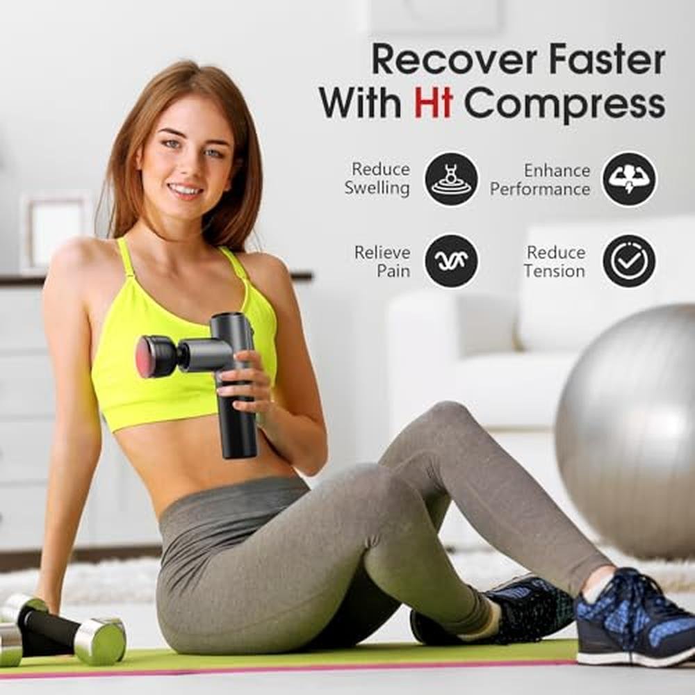 - The massage gun is equipped with heat and cold percussion for enhanced muscle recovery and relaxation