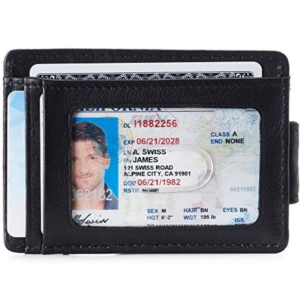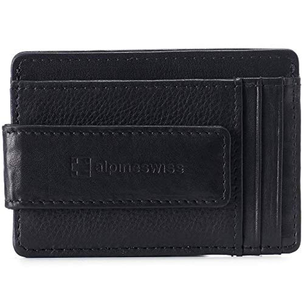 Alpine Swiss Harper Mens RFID Slim Money Clip Front Pocket Wallet Minimalist Leather ID Card Holder Black