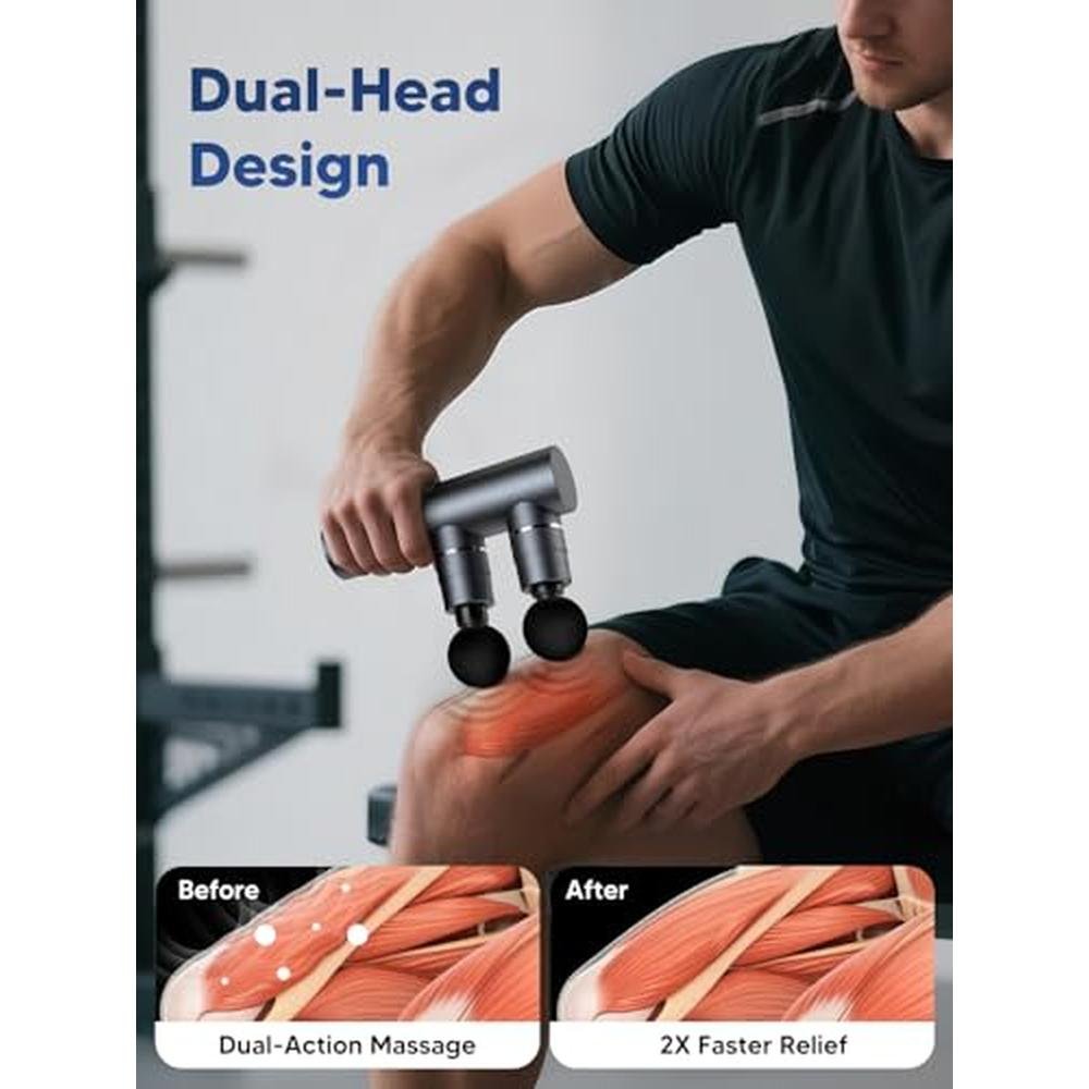 Indulge in the ultimate relaxation experience with the Arboleaf Massage Gun Deep Tissue, a premium and portable handheld massager designed to target sore muscles, back, and shoulder tension. As a leader in the high-end massage industry, our device boasts double heads for enhanced versatility and a full-metal construction for durability. With 5 modes and seamless speed control, you can customize your massage experience to suit your specific needs. Whether you're looking for a deep tissue massage or a gentle soothing session, the Arboleaf Massage Gun is the perfect solution. Say goodbye to muscle soreness and hello to a life of comfort and tranquility. For those interested in learning more, the Arboleaf mini handheld massage gun is made of aluminum alloy, lightweight and portable, equipped with high-quality aluminum alloy massage heads, and features an intelligent sensor automatic frequency adjustment gear speed with a 3200rpm high-torque brushless motor.