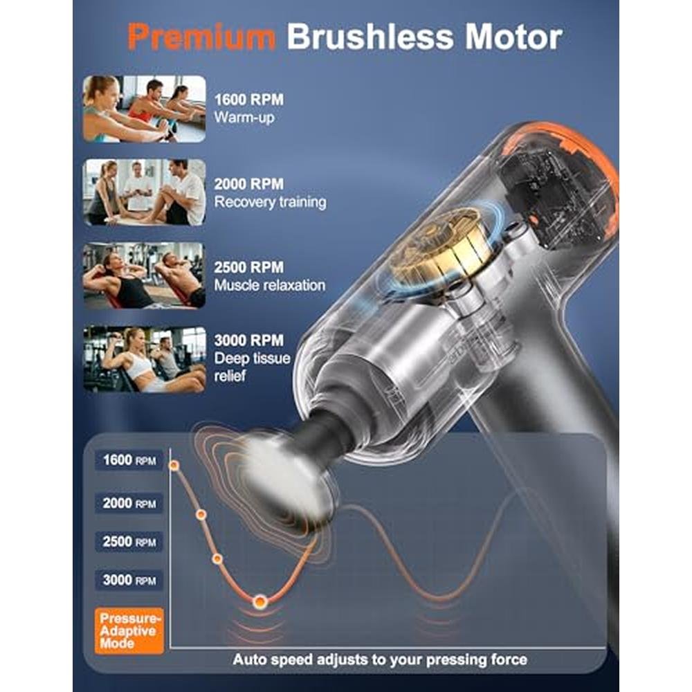 - The powerful brushless motor provides 3000 RPM and a 10mm stroke for deep penetration and muscle relaxation