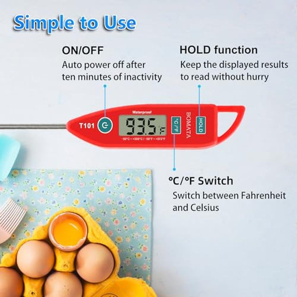Thermometer Bomata | BOMATA T101 2-Pack Waterproof IPX7 Meat Thermometer | Instant Read Food Thermometer with Long Probe for Water, Liquid, Kitchen Cooking, Grill, and BBQ