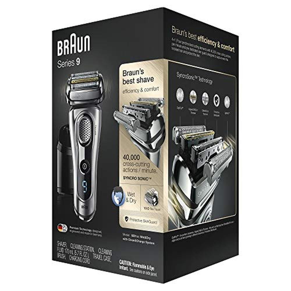 Braun Electric Razor | Braun Series 9 Foil Shaver with Precision Beard Trimmer | Rechargeable Wet Dry Shaver with Clean Charge Station and Leather Travel Case