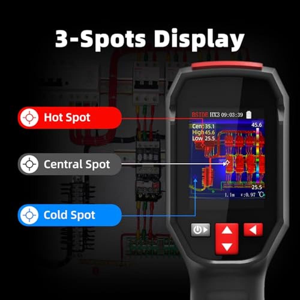 Experience the power of high-resolution thermal imaging with the BSIDE Thermal Imaging Camera, featuring a 240 x 240 resolution handheld infrared IR camera. This advanced device is designed for professionals and DIY enthusiasts alike, particularly for home inspection, HVAC, and heat pump circuit break analysis. With 15 thermal palettes and a 320 x 240 full-viewing TFT display, you can easily detect temperature differences and anomalies in real-time. The BSIDE Thermal Imaging Camera operates within a wide temperature range of -4~1022°F, making it an ideal tool for various applications, including thermal management, circuit break inspection, and HVAC system optimization. Whether you're looking for a reliable thermal imaging solution for industrial or residential use, the BSIDE Thermal Imaging Camera is the perfect choice.
