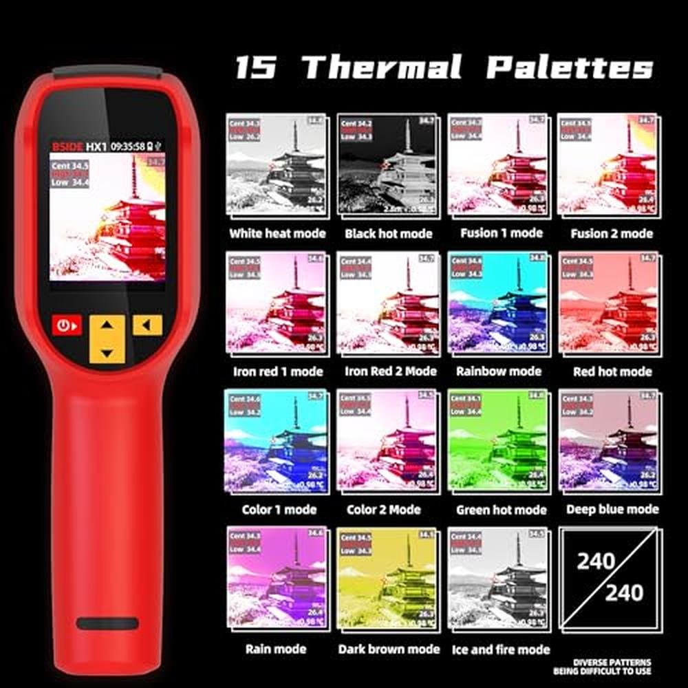 BSIDE Thermal Imaging Camera 240240 Resolution 15 Color Palettes Infrared Thermal Imager -4F to 1022F 25Hz Rechargeable Handheld Thermal Camera with Laser Pointer 50FOV