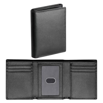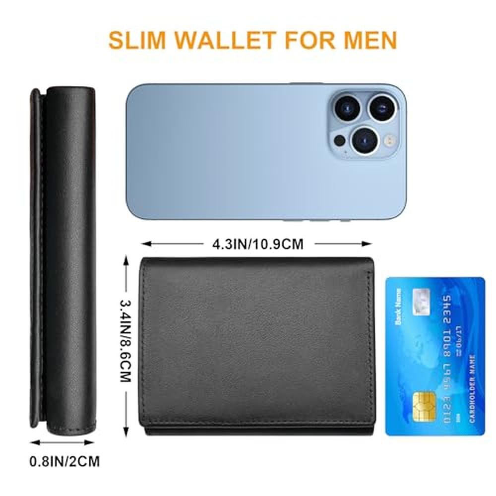 - Style And Utility: Measuring 4.3" high by 3.4" wide, this leather mens wallet trifold folds twice yet is compact enough to fit easily in your pocket. Whether it's your everyday essentials or travel necessities, this trifold wallet effortlessly accommodates your needs without adding bulk.