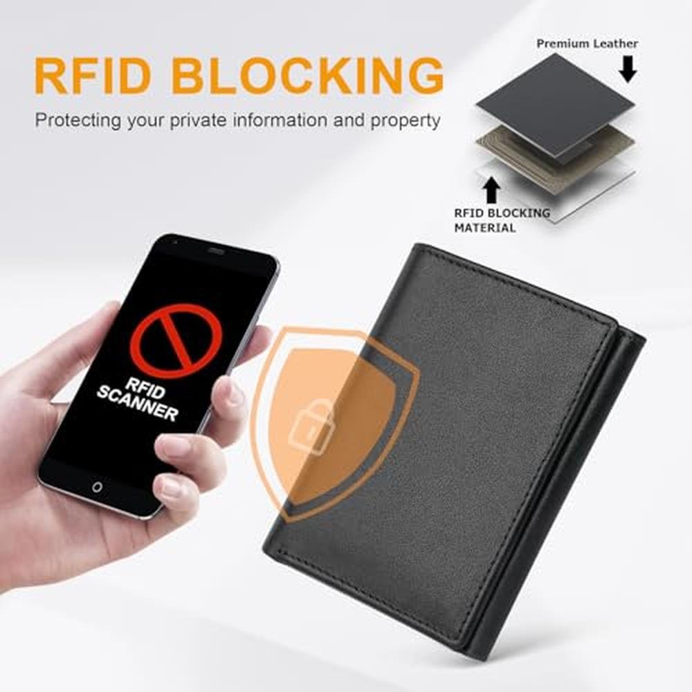 Genuine Leather Trifold Wallet for Men, Rfid Blocking Mens Wallets with ID Window