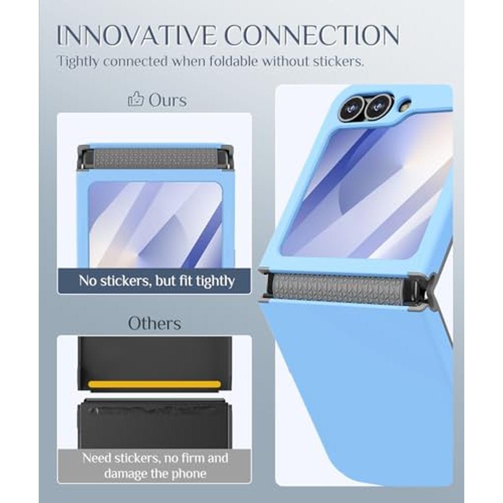 Unlike cases that rely on sticky adhesive pads, our form-fitting connected design snaps on securely, no stickers required. It stays firmly in place, hugs your phone's curves, and leaves no residue when removed. It's perfect for users who frequently upgrade cases or value a clean, sleek look without damaging their phone's finish. The hinge is the most delicate part of the Z Flip 7 FE / 6 / 5, and we've got it covered. The flexible hinge guard expands and contracts with your phone's movements, providing dust resistance and protection from mechanical wear.