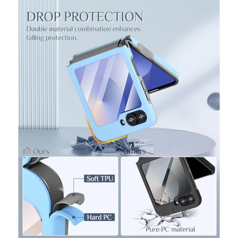 Experience the ultimate flip protection solution for your Samsung Galaxy Z Flip 7-FE, Z Flip 6, or Z Flip 5 with our specially designed case. Our flip phone screen protection case is engineered to provide comprehensive defense against scratches, drops, and other daily wear and tear, ensuring your device remains in pristine condition. With hinge protection and a built-in screen protector, you can enjoy wireless charging compatibility and unparalleled flip cover with protection. Whether you're looking for a protection plan for flip phones or a reliable flip device protection solution, our case delivers.