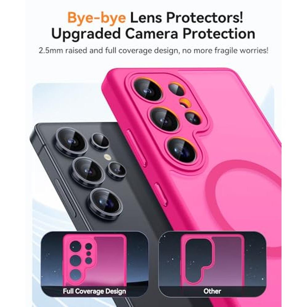 CANSHN Designed for Samsung Galaxy S25 Ultra Case (2025) [Full Camera Protection] [Compatible with Magsafe] Translucent Matte Back Protective Phone Cover, Hot Pink