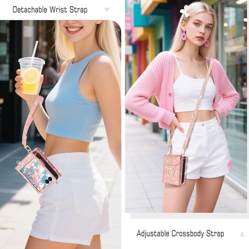Discover the perfect accessory for your Galaxy Flip 7 with this luxury phone cover, featuring a glitter PU leather exterior and a 360-degree ring stand. The crossbody design, complete with a wrist strap, makes it ideal for women and girls who want to stay connected and stylish. With its shockproof phone cover, you can trust that your Galaxy Flip 7 is safeguarded against daily wear and tear. Explore the world of high-end phone accessories with this exquisite case, featuring a unique blend of functionality and fashion. Transform your mobile experience with this premium case, designed to provide superior protection and style.