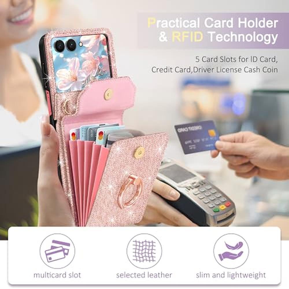 Galaxy Flip 7 Case | Samsung Galaxy Z Flip 7 Premium Wallet Case with 5 Card Holder | Rose Gold Luxury Phone Cover