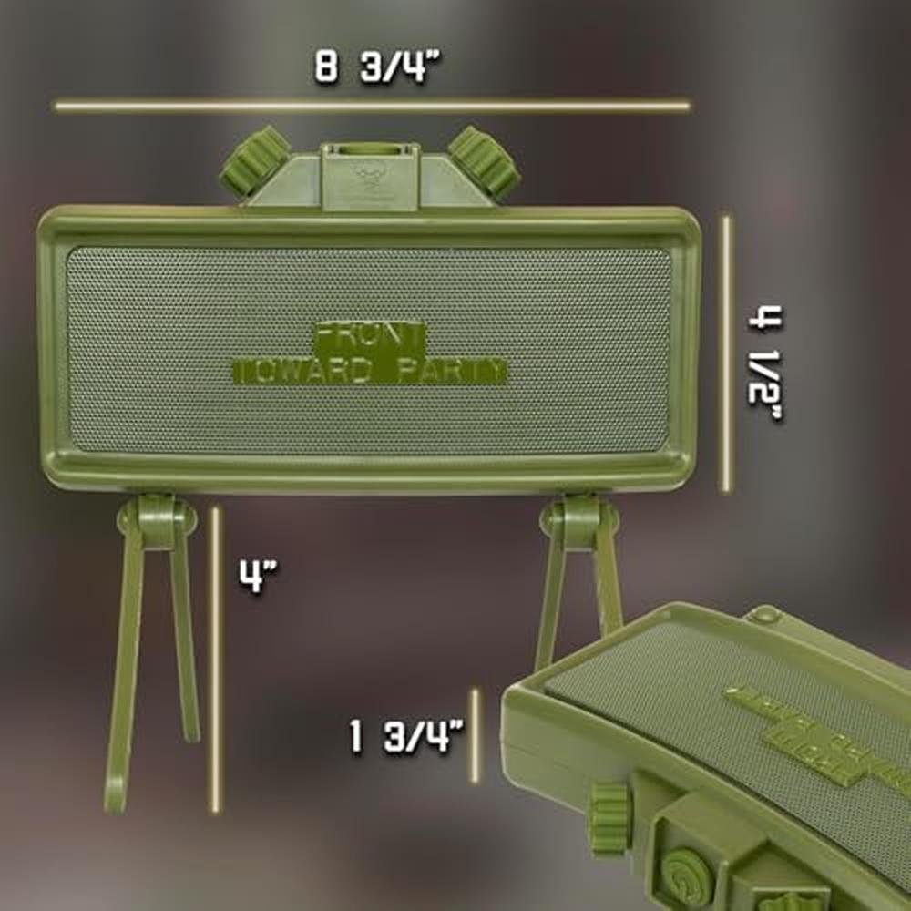 Introducing the Claymore Portable Bluetooth Speakers by Catastrophic Industries! Designed to captivate both audiophiles and collectors alike, our loud portable Bluetooth speaker combines superior sound quality with a rugged military-inspired design, ensuring durability and a unique visual appeal. Elevate any event or moment with explosive audio that enriches your favorite music, podcasts, or audiobooks, while the impressive 8-hour battery life keeps the party going. Our wireless speakers with Bluetooth promise an unforgettable and the best auditory journey. Don't miss out on the opportunity to own a piece of innovation that delivers both performance and style. Key Features Dual-speaker system for immersive stereo sound Long-lasting 8-hour battery life Bluetooth connectivity with your computer, laptop, Android, iPhone, MP3 Player, iPod or smart device Compatibility with modern charging solutions through a C type USB charging port Waterproof design for safe usage in various environments Dustproof and shockproof to withstand harsh conditions Boring-proof with its sleek design and superior sound quality, guaranteed to enliven any gathering or event About Us We specialize in crafting audio systems that boast a distinctive military artillery aesthetic. Our products seamlessly blend premium sound quality with a rugged, militaristic design, resulting in an audio experience like no other. Employing cutting-edge technology, we engineer audio systems that not only replicate the formidable look of artillery but also harness its sonic power. Built to withstand the test of time, our equipment caters to both extreme audio enthusiasts and military memorabilia collectors. Add the Claymore Portable Bluetooth Speakers to your cart!