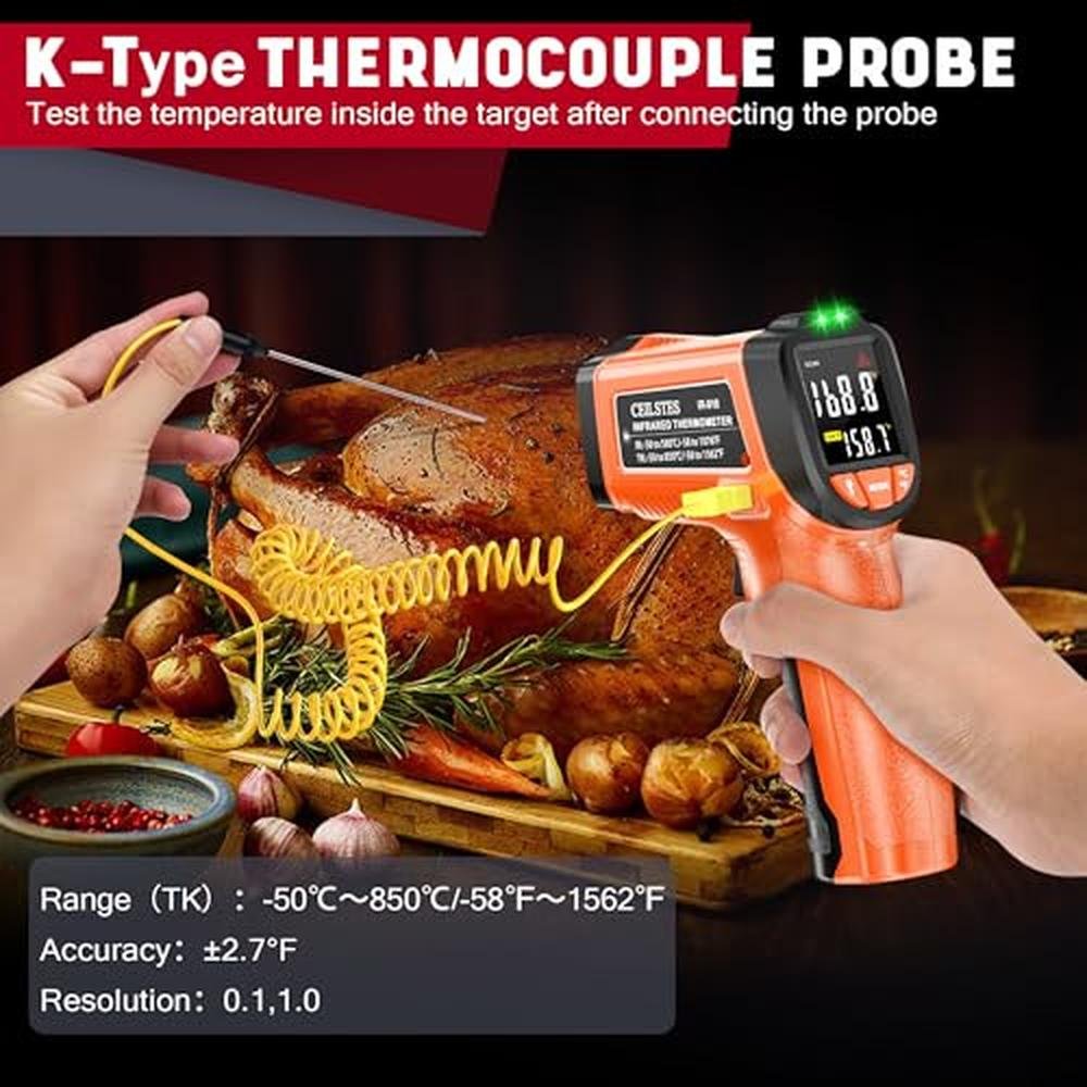 Infrared Thermometer Gun | CEILSTES IR-916 High-Precision Non-Contact Digital Laser Temperature Gun | Adjustable Emissivity and Max/Min Values for Industrial, Cooking, and HVAC Applications