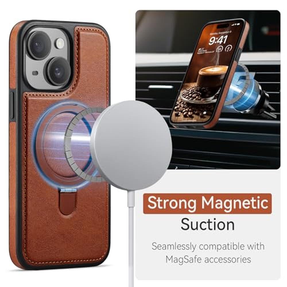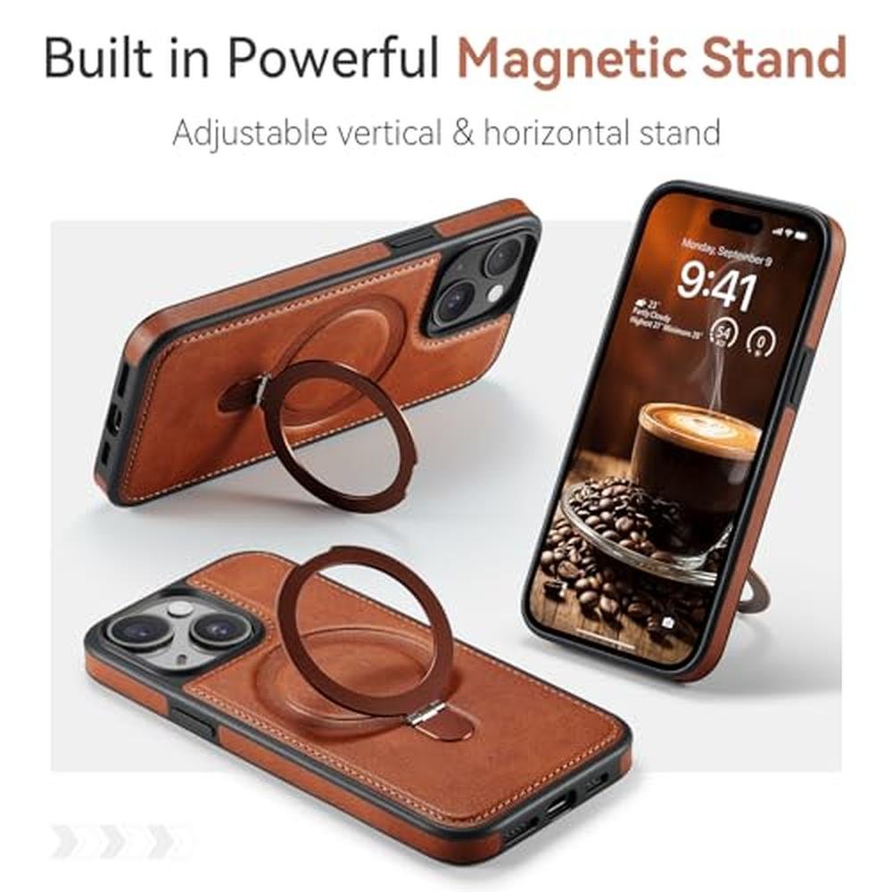 CHEEWADA for iPhone 13 Case with Stand Compatible with Magsafe PU Leather