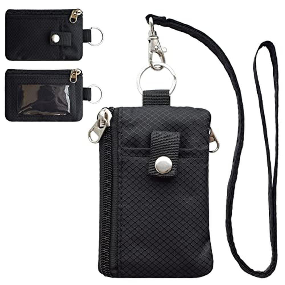 CHENSPRX Minimalist RFID Blocking Small Wallet with ID Window,WaterResistant Zip Id Case Wallet with Lanyard Keychain for Cards,Cash,Travel,Women,Men (Black)