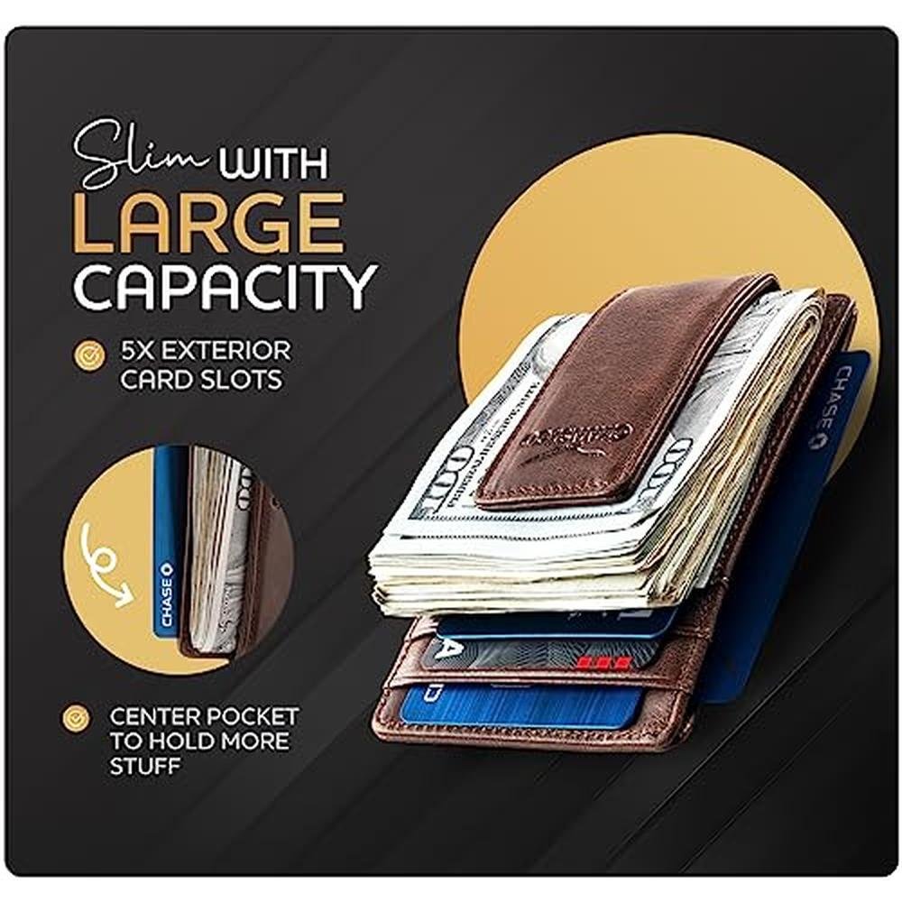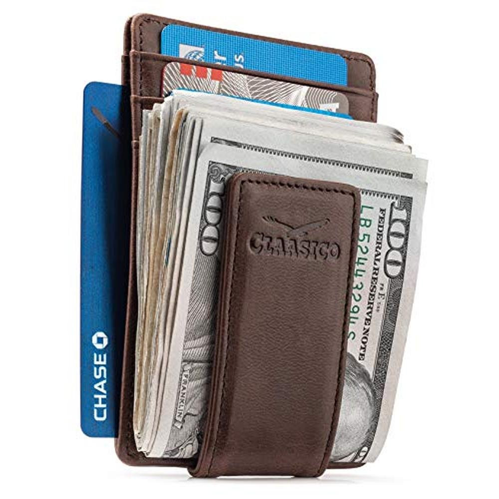 Claasico Money Clip Leather Wallet For Men Slim Front Pocket RFID Blocking with Super Strong Magnetic