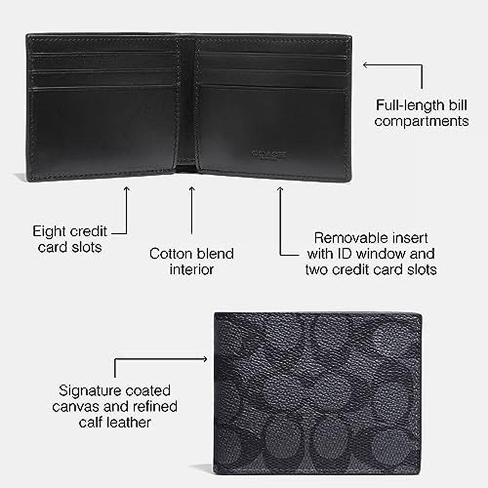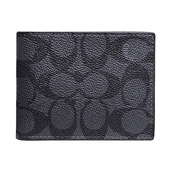 Coach Slim Billfold in Signature, Charcoal/Black, One Size