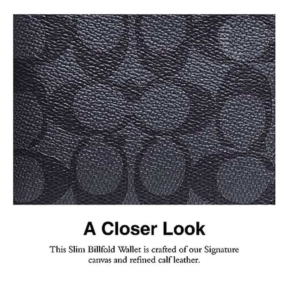 - Our Signature Canvas: The best kind of mix up. This rich, mixed leather design combines sophisticated refined calf leather with our signature canvas - for a perfectly iconic Coach wallet